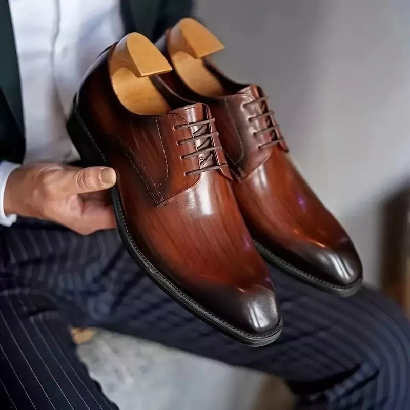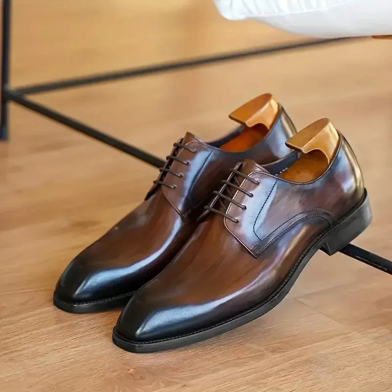 Handmade Dark Brown Shaded Leather Lace Up Derby Office Shoes For Mens