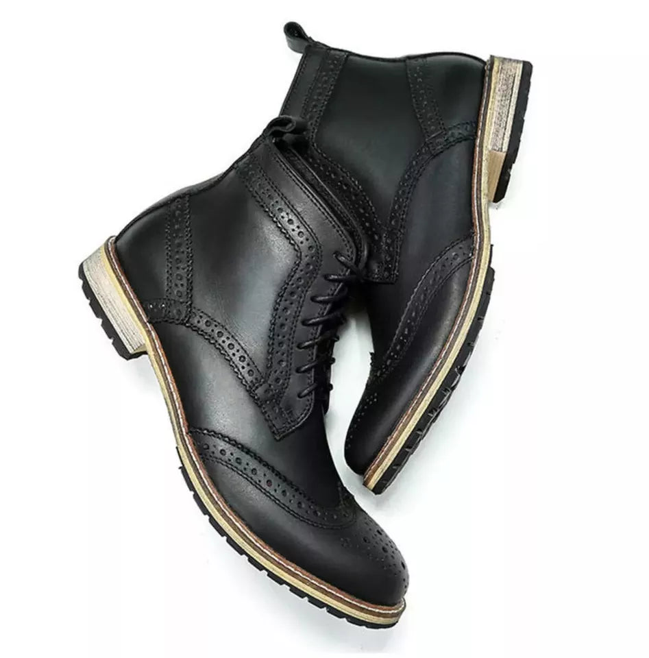 Handmade men black leather dress boots, formal wingtip brogue shoes for mens
