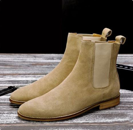 Handmade Men’s Beige High Ankle Chelsea Dress Office Boots, Real Suede Ankle Business Boots