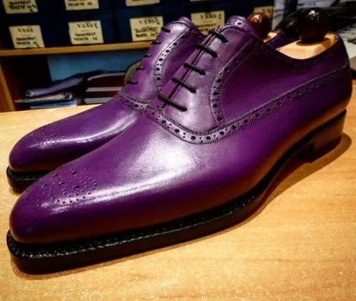 Handmade Men’s Purple Leather Formal Brogue Dress Shoes, Party Shoes