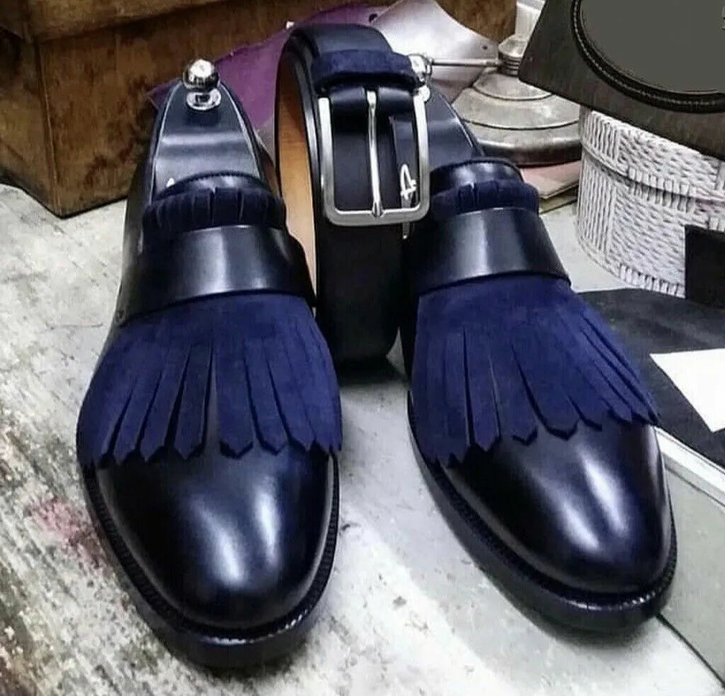 Handmade Men’s Round Toe Fringes Moccasin Dress Shoes, Real Leather Suede Shoes