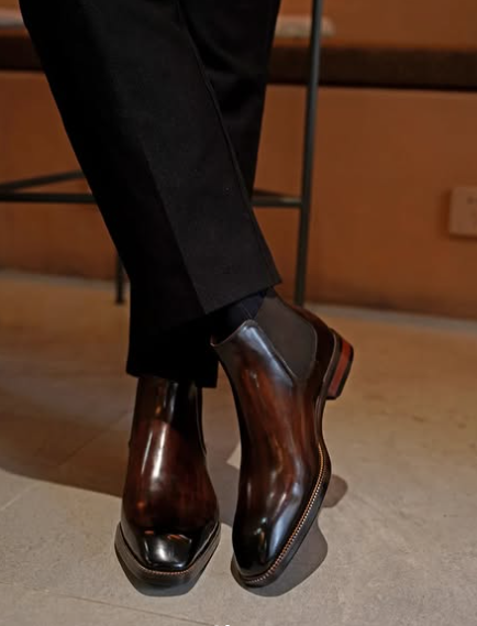 Handmade Men Shaded Brown Chelsea Leather Ankle Pull On Dress Boot, Formal Boot