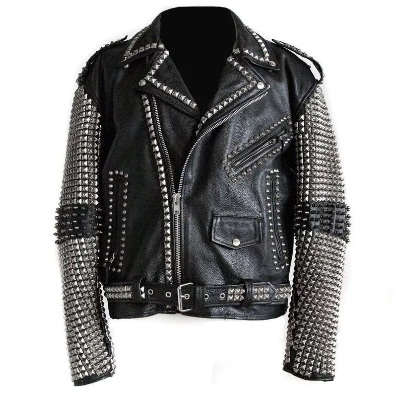 Handmade Men Studded Leather Biker Motorcycle Steam Punk Rocker Jacket Rock punk Men