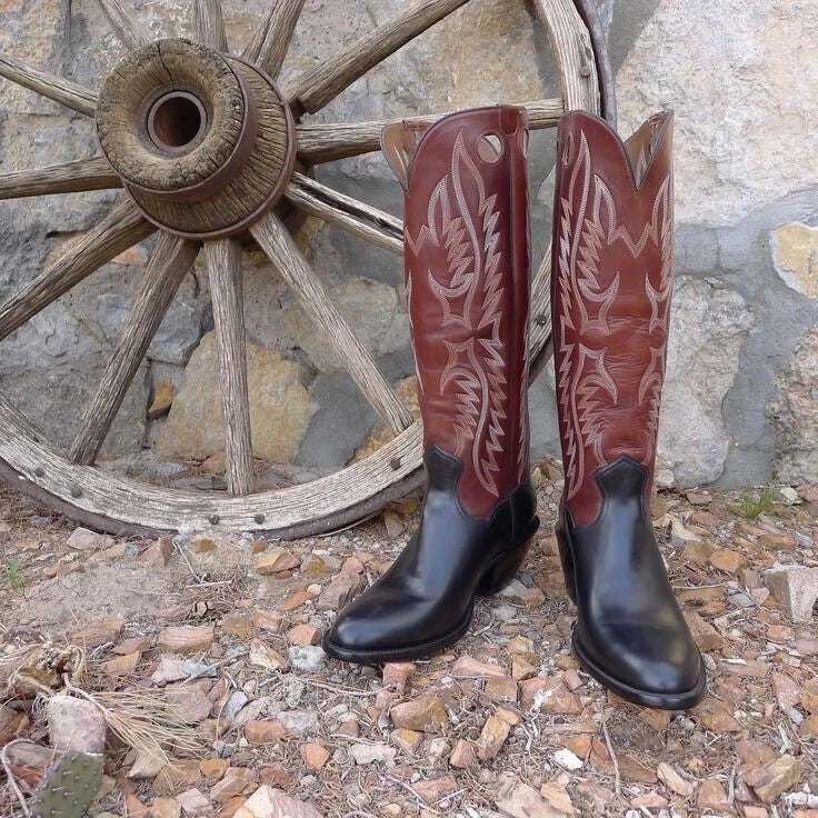 Handmade Men Two Tone Leather Western High Ankle Formal Embroidered Cowboy Boots