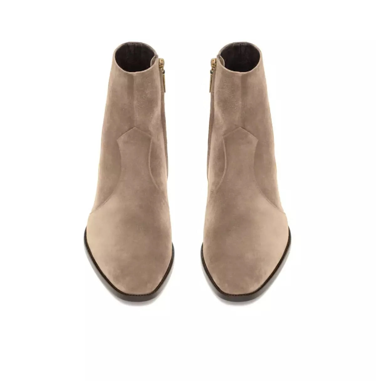 Handmade Mens Beige Suede Ankle Boots, Men Dress Boot, New Zipper Boot
