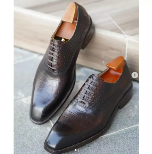 Handmade Mens Brown Alligators Lace Up Dress Shoes, Men Crocodile Texture Oxford Shoes