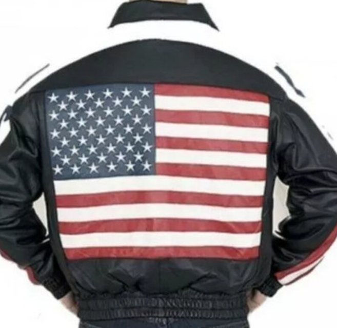 Men’s Handmade USA Flag Jackets with Black Backs Genuine Leather Jackets For Men