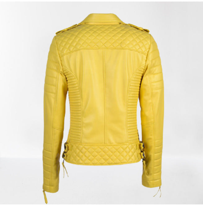 Women Yellow Leather Biker Fashion Jacket, Men Leather Slim Fit Apparel