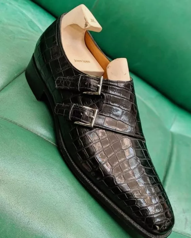New Men black Crocodile Textured Double Monk Strap Handmade shoes, leather tuxedo dress shoes mens